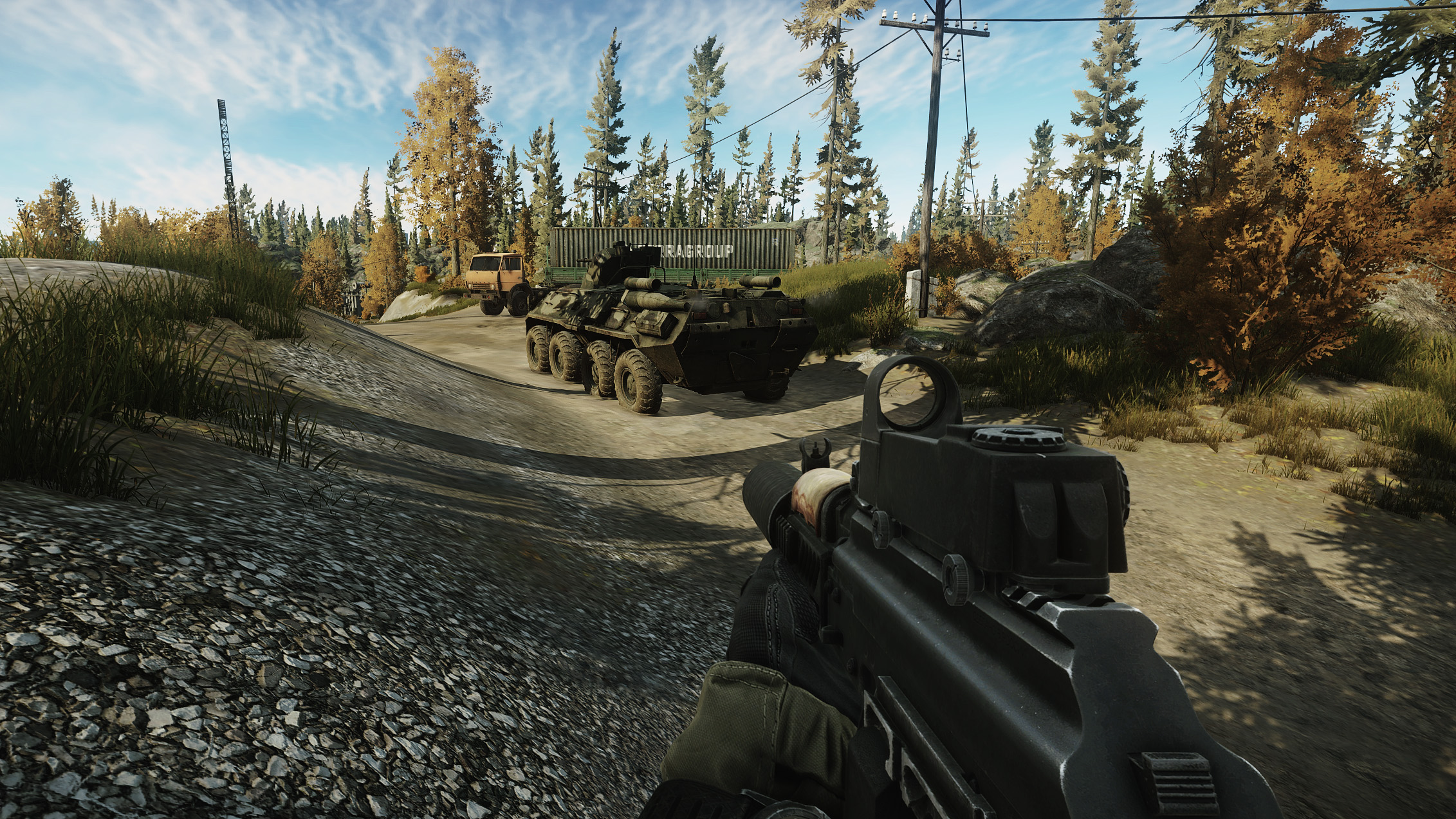 Вы найдёте фургон с открытым багажником, позволяющий вам пролезть сквозь него. Если враги, охраняющие его, ушли — или вы уничтожите их — вы сможете добраться до потенциально большого запаса мощных патронов. Вы также можете найти ценные редкие предметы, такие как GPUs, Iridiums и фигурки Tarkov, а также другое редкое промышленное снаряжение.