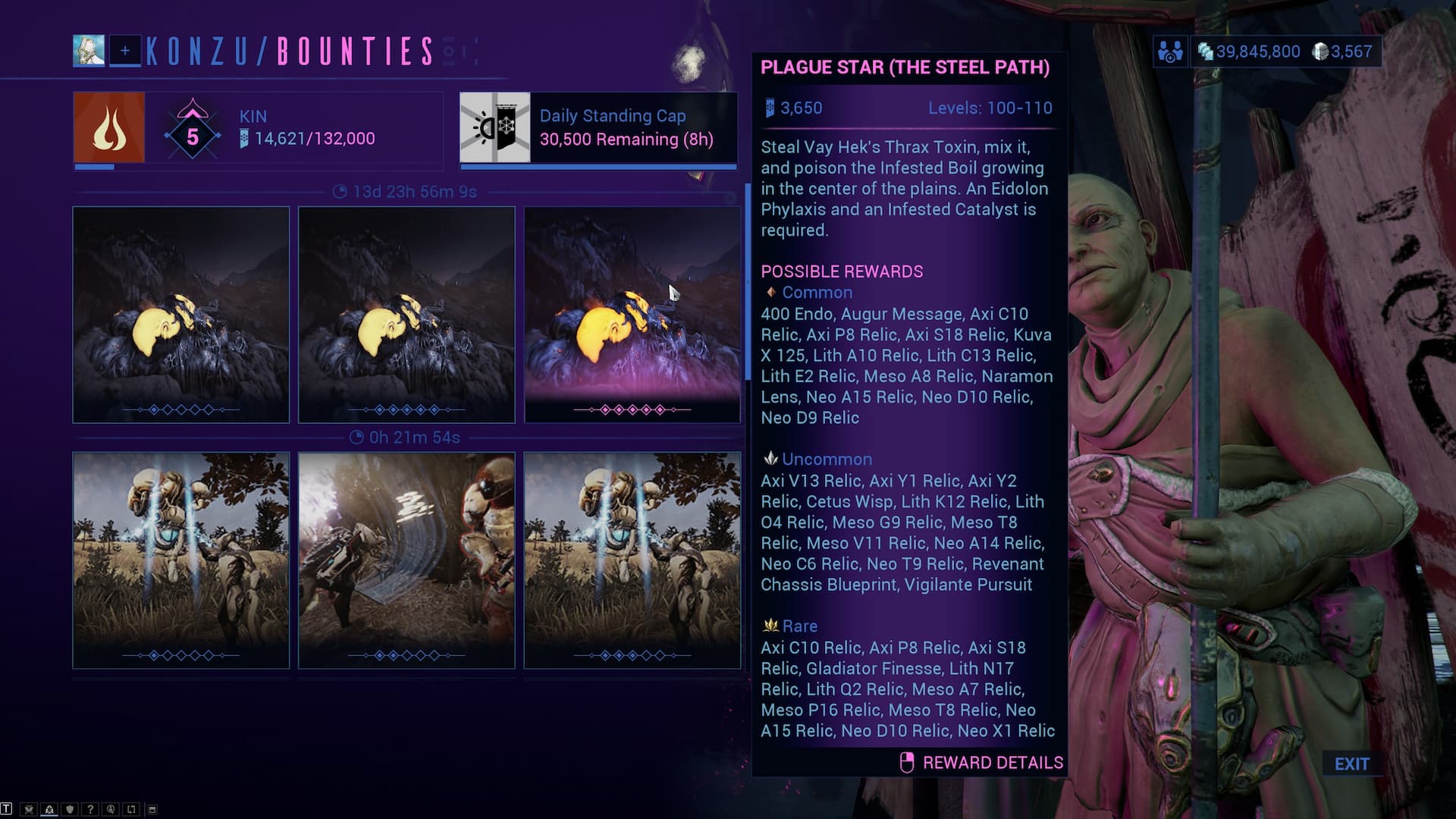 Во время операции «Звездная чума» Равнины Эйдолон у Цетуса кишат зараженными врагами. В самом сердце огромных открытых равнин находится колоссальный гнойник, зараженный, который в конечном итоге вылупит рой врагов, с которыми вам предстоит разобраться. К счастью, Вэй Хек обладает токсином, который мог бы вам помочь, но он не готов с ним расстаться. Поэтому вы тайно забираете токсин, вводите его в гнойник, вступаете в бой с ордой зараженных и затем эвакуируетесь, чтобы получить свои награды.