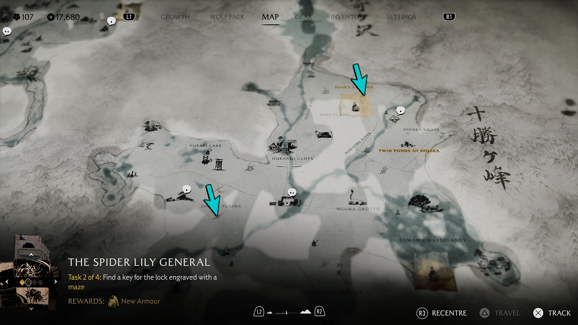 - Зелёная Холмистая Волчья Нора — эта нора находится к югу от Лика Шикоцу, рядом с дорогой, идущей на юг к водопадам Сирахиге.