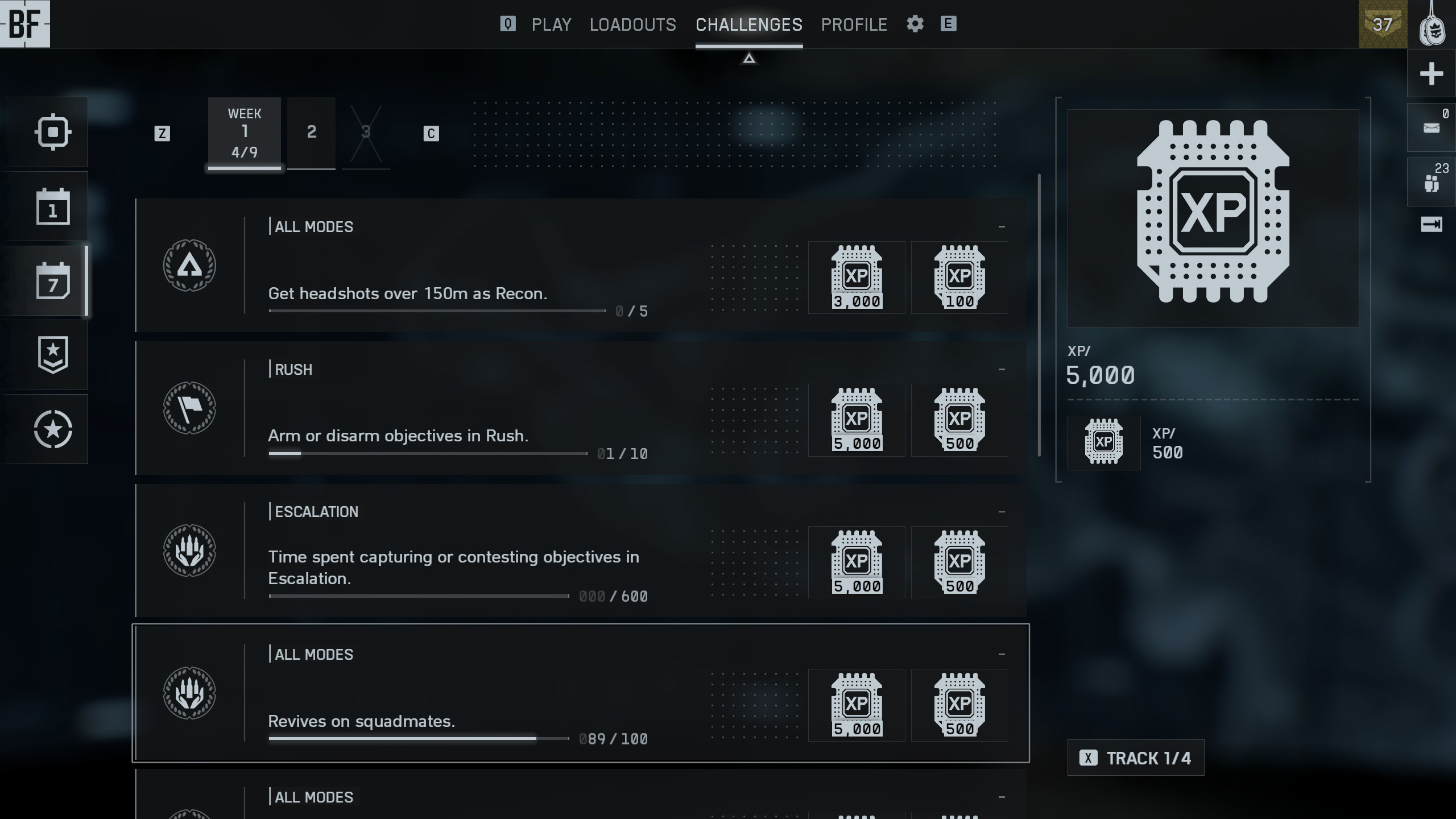 | Rush Challenge 4 | Уничтожайте M-COM в матче x4 Выигрывайте матчи в Rush x5 |