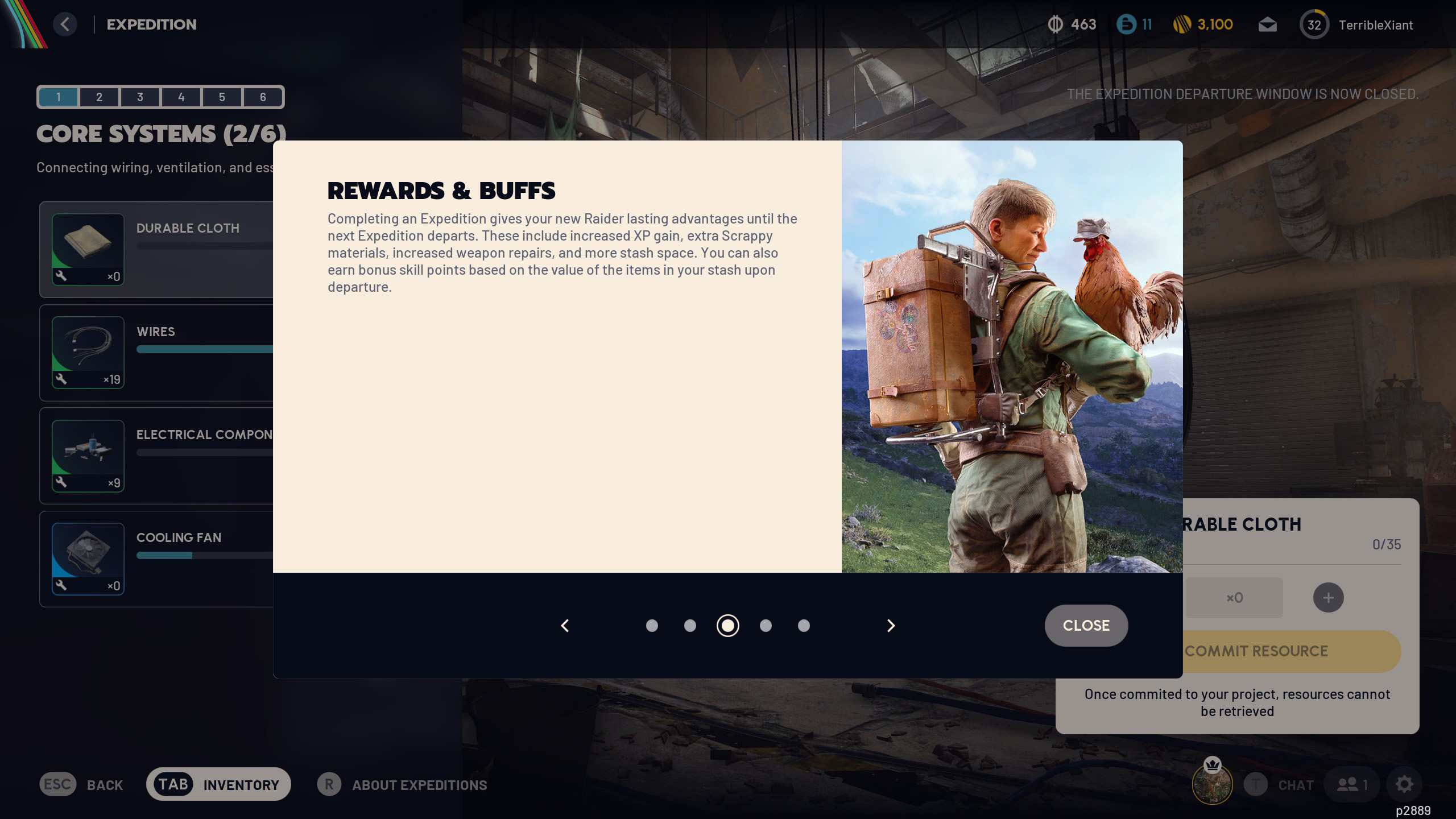 Награды за экспедиции включают в себя такие преимущества, как усиление опыта, дополнительные материалы от Scrappy и улучшенный ремонт оружия. Эти бонусы действуют в течение одной экспедиции и должны быть заработаны снова с каждым новым циклом или будущими экспедициями, чтобы быть реактивированными.