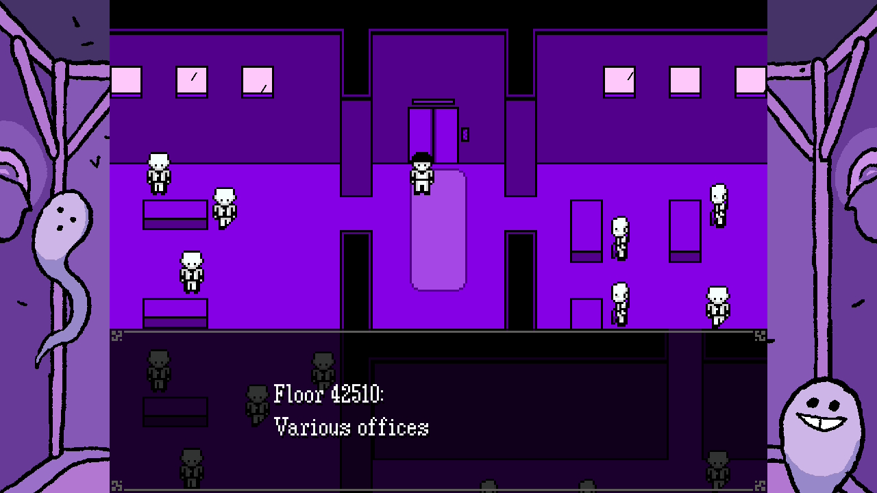 Когда вы впервые войдете в этот лифт, он предоставит вам доступ как к первому этажу, так и на крышу. Оказавшись на первом этаже, вы попадете в лабиринт кабинетов — хаотичную рабочую зону, где люди болтают о «документах» и «штампах».